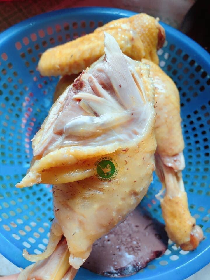 Gà có đầy đủ gan, mề chỉ không có lòng.
