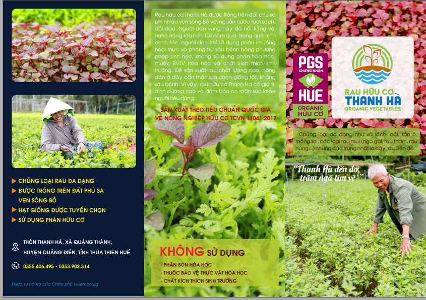 Rau hữu cơ Thanh Hà được trồng trên đất phù sa, phì nhiêu ven sông Bồ với nguồn nước tưới sạch, dồi dào. Người dân vùng này đã nổi tiếng với nghề trồng rau hơn 100 năm qua. Trong quá trình canh tác, người dân chỉ sử dụng phân chuồng hoai mục và phòng trừ sâu bệnh bằng phương pháp sinh học, không sử dụng phân bón hóa học, thuốc BVTV hóa học và chất kích thích sinh trưởng. Để sản xuất rau chất lượng cao, nông dân ở đây cẩn thận lựa chọn giống tốt, kháng sâu bệnh. Vì vậy, rau hữu cơ Thanh Hà có giá trị dinh dưỡng cao và đảm bảo an toàn sức khỏe người tiêu dùng.