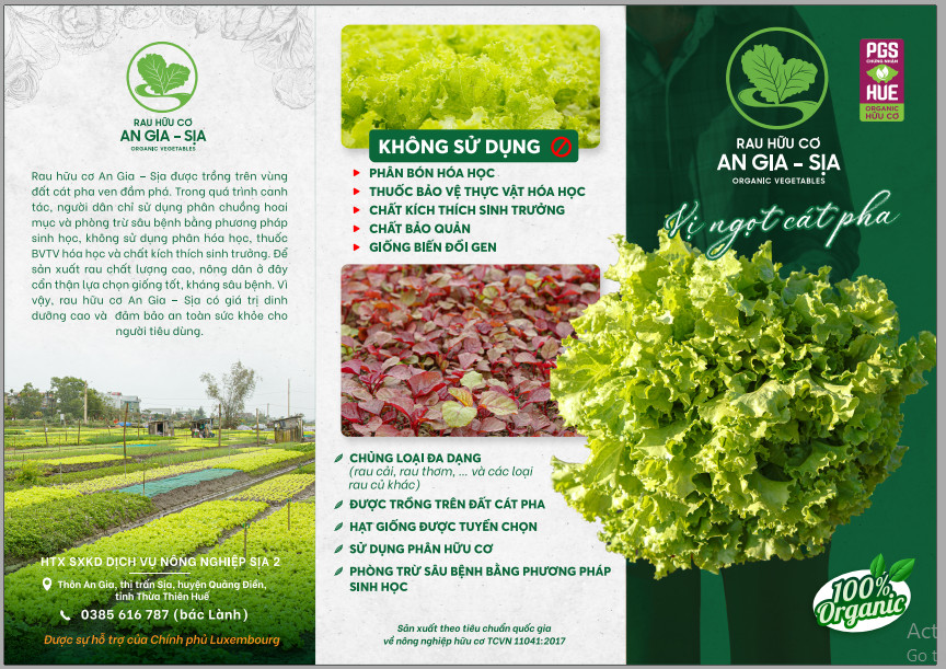 Rau hữu cơ an gia sịa được trồng trên đất các đầm phá. Trong quá trình canh tác người dân sử dụng phân chuồng hoai mục và phòng trừ sâu bệnh bằng phương pháp sinh học không sử dung chất hóa học . Để sản phẩm rau chất lượng cao, nông dân ở đây cẩn thận lựa chọn giống tốt, kháng sâu bệnh. Vì vậy rau hữu cơ an gia sịa có giá trị dinh dưỡng cao và đảm bảo an toàn cho người tiêu dùng